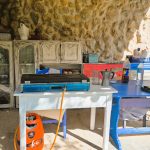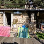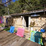 - Cocina exterior bajo porche contiguo. Dispone de nevera de gas nueva y cocina de 3 fuegos de camping.